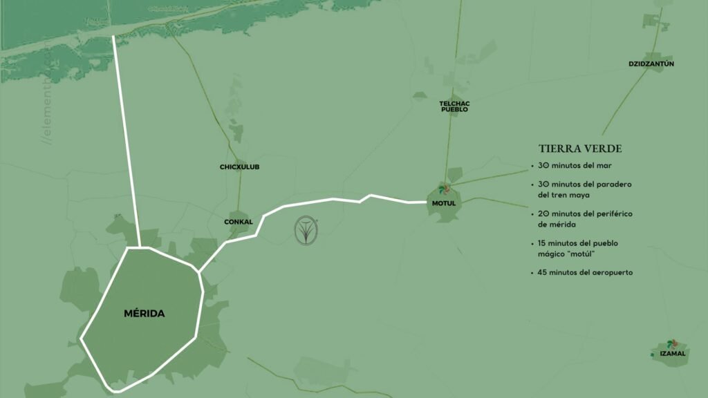 TIERRA VERDE es un desarrollo completamente Urbanizado Ubicado en una zona de alto crecimiento y expansión a 16 km del periférico de Mérida. El crecimiento y la plusvalía a aumentado a un ritmo acelerado, ya que se encuentra rodeado de importantes proyectos inmobiliarios.